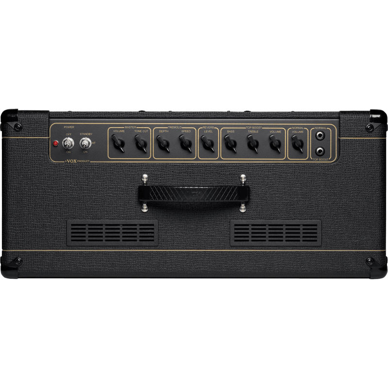 D’autant que cette belle puissance est servie par un haut-parleur Celestion Greenback 12 pouces qui sait répondre à toutes les sollicitations dynamiques de l’ampli et donc, a fortiori, de votre jeu à la guitare. Mais Vox ne s’est pas arrêtée en chemin car s’ils ont conservé l’esthétique indémodable du modèle originel, ils ont également prévu une réverbe à ressort, déclenchable via le footswitch, un effet trémolo qui rappelle les belles heures du rock ‘n’ roll, et même un master volume. Permettant dès lors à cet ampli mythique de demeurer un modèle du genre autant pour les musiques actuelles que pour les grands classiques du rock.