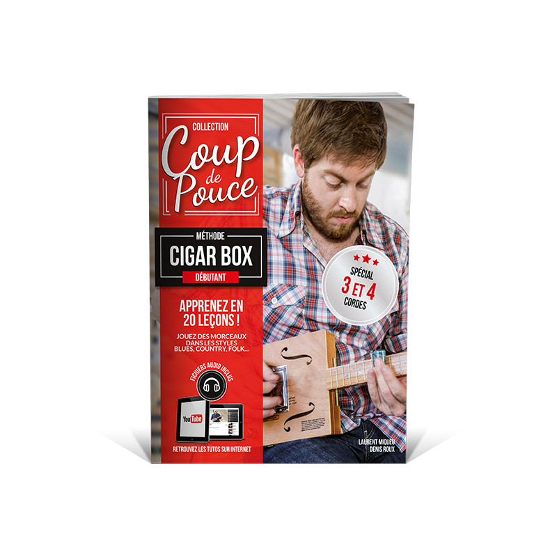 La cigar box est une guitare fabriquée à l'origine avec une boîte de cigares utilisée comme caisse de résonance. La méthode Coup de pouce cigar box guitare en 20 leçons, agrémentée d’illustrations pour comprendre le jeu des deux mains et la position des doigts, fournira des explications simples et des conseils encourageants pour bien débuter sans difficulté.