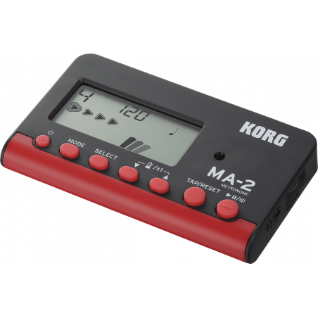 Maintenant encore plus facile à utiliser et à entendre. Le MA-2 est le nouveau métronome indispensable pour les instruments d'orchestre. Le MA-2 est l'outil indispensable pour l'entraînement rythmique et couvre solidement les fonctions d'un métronome. En plus des fonctionnalités de base telles qu'une large gamme de tempo et un nombre généreux de rythmes et de motifs rythmiques, il offre également des fonctions conviviales telles qu'un affichage amélioré, un son fort et net, et des fonctions supplémentaires telles qu'un nouveau mode "timer". Choisissez parmi deux combinaisons de couleurs vives et élégantes : bleu et noir, ou noir et rouge.